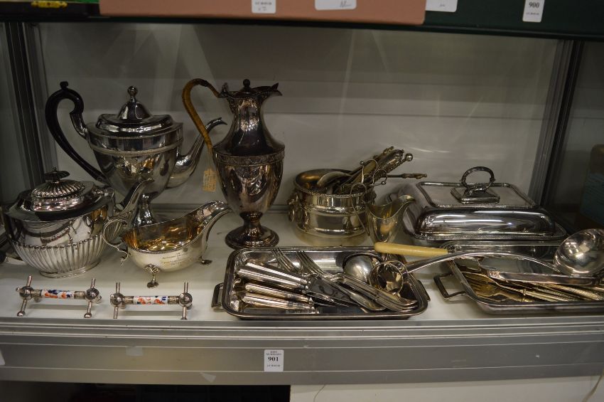 A good collection of plated items to include coffee pot, tea pot, claret jug, entree dishes etc.