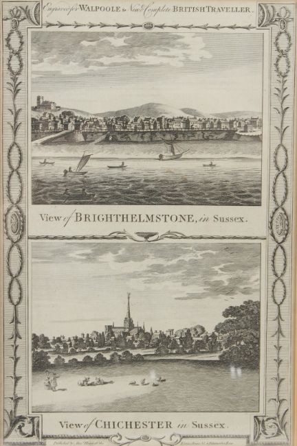 WALPOOLE'S NEW COMPLETE BRITISH TRAVELLER View of Brighthelmstone in Sussex View of Chichester in Sussex' 18th century engraving published by Alex Hogg 34 x 23cm
