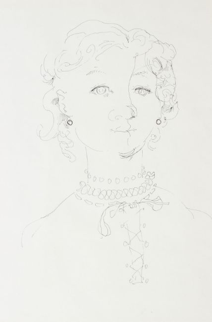 WILLIAM CROSBIE (1915-1999) Two portrait studies of young women pen and ink drawings mounted on card 28.5 x 20cm (2)