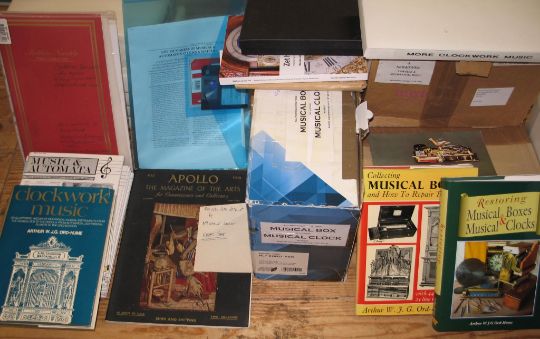 [MUSICOLOGY / MUSICAL BOXES / CLOCKS] ORD-HUME (A. W. J. G.) Clockwork Music, 4to, illus., clo., d.w., 1st Edn., L., 1973; 2 further books by Ord-Hume on collecting / restoring Musical Boxes & Clocks; & his archive files of images / photographs & negatives, etc. (2 boxes).[Provenance; the Library of Arthur W.J.G. Ord-Hume, lots 2-254, see lot 1 for details]