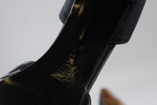 CHARLES JOURDAN, A PAIR OF LADIES BLACK PATENT LEATHER AND SATIN HIGH HEEL SHOES, size 40.