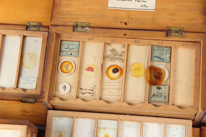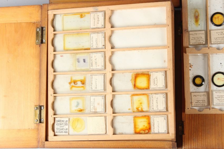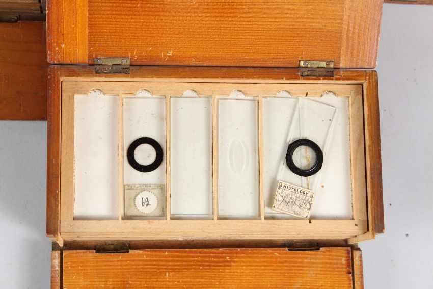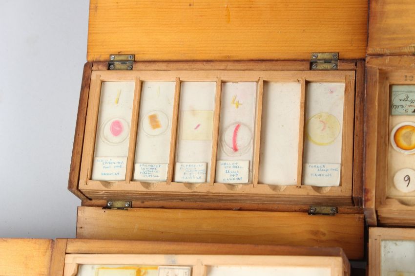 A LARGE COLLECTION OF MICROSCOPE SLIDES, boxed.