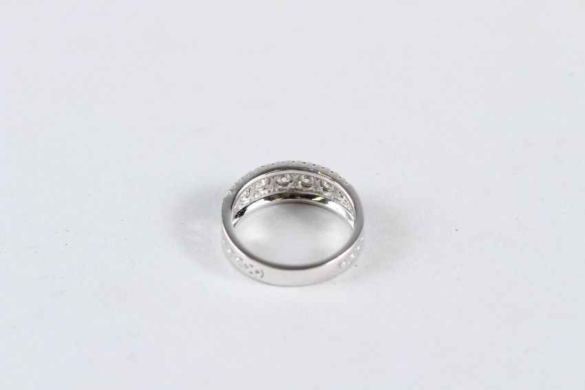 AN 18CT WHITE GOLD DIAMOND HALF HOOP RING, with pierced shank.