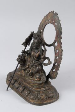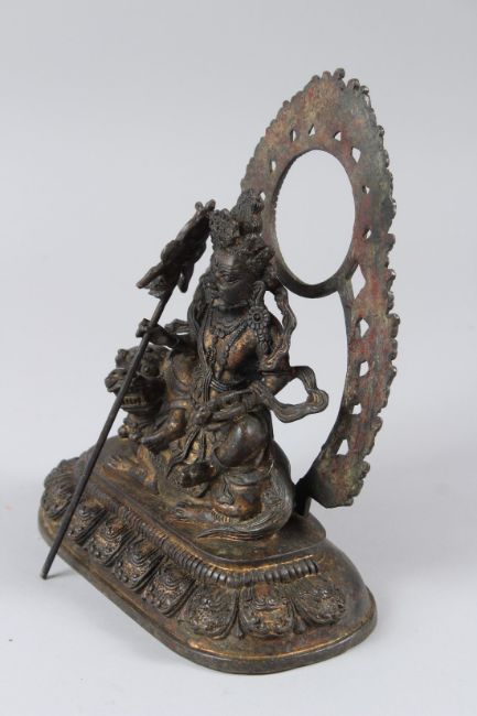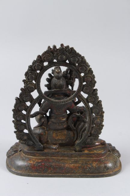A TIBETAN GILT BRONZE STATUE OF VAISRAVANA.