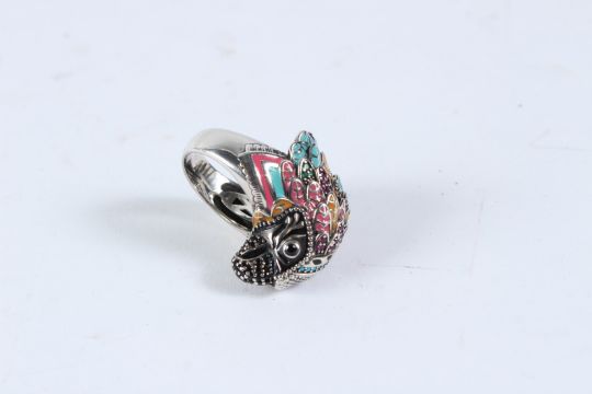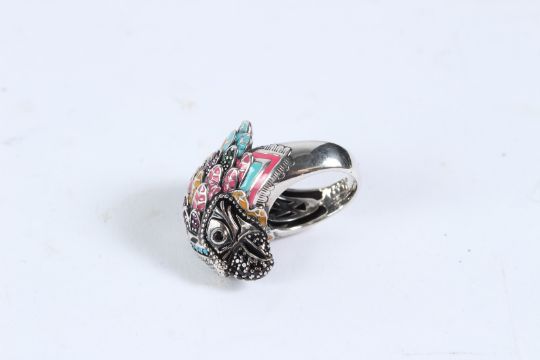 A THOMAS SABO SILVER RING on a bird's head.