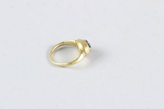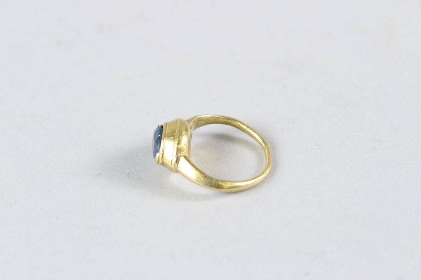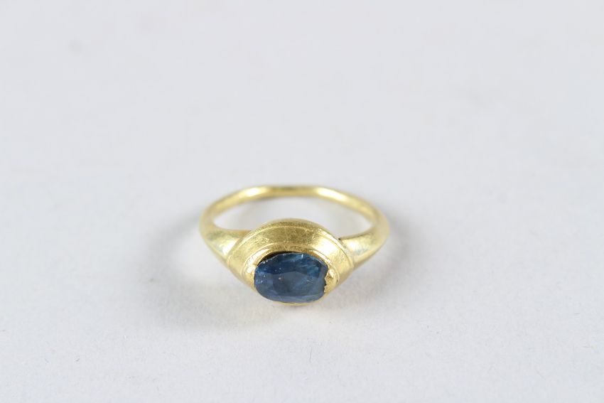 A 22-24CT EARLY GOLD RING with large sapphire.