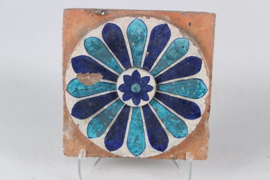 A FINE LARGE 18TH-19TH CENTURY NORTH INDIAN MULTAN GLAZED POTTERY TILE.