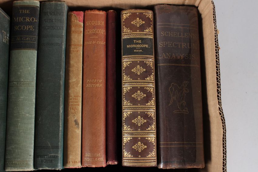 DR HENRI VAN HEURCK, THE MICROSCOPE, Its Construction and Management..., London 1893, 4to, decorative cloth gilt; together with a collection of books relating to microscopes (Qty).