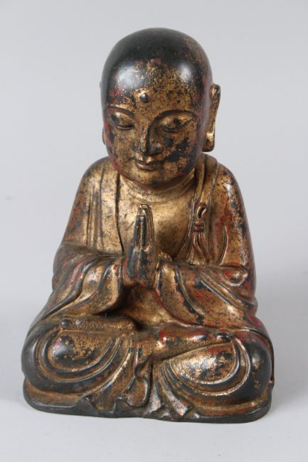 A CHINESE GILT BRONZE BUDDHA.
