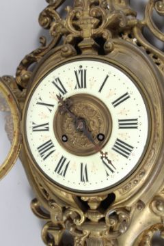 AN ORNATE CAST BRONZE CARTEL CLOCK with enamel dial.
