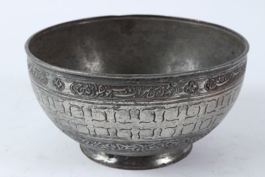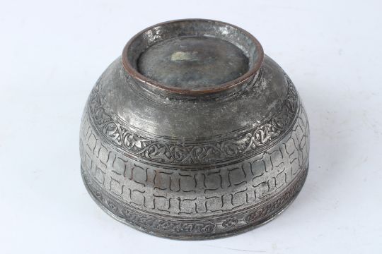 A FINELY ENGRAVED PERSIAN SAFAVID TINNED COPPER BOWL.