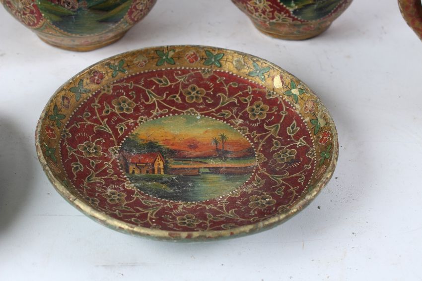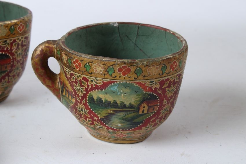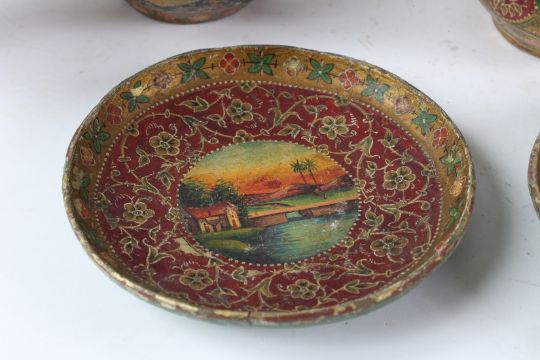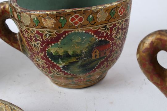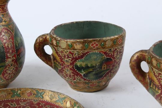 A VERY UNUSUAL 19TH - 20TH CENTURY INDIAN KASHMIRI PAINTED PAPIER MACHE TEA SET.