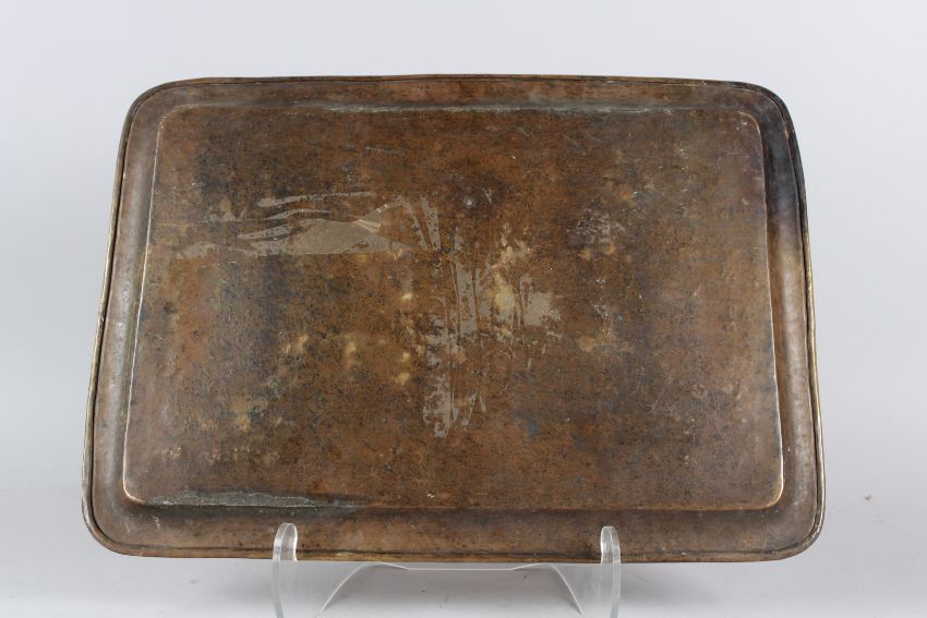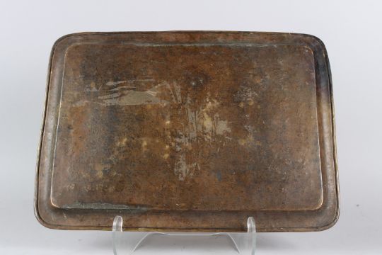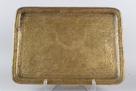 A 19TH CENTURY PERSIAN QAJAR BRASS TRAY engraved with figural decoration.