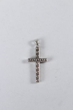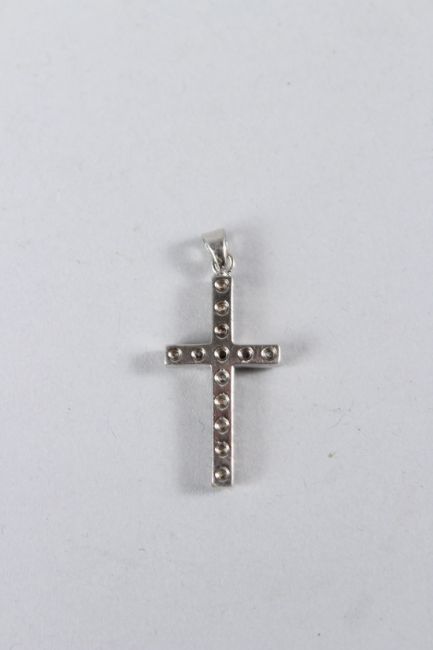 A DIAMOND CROSS in a white gold setting.