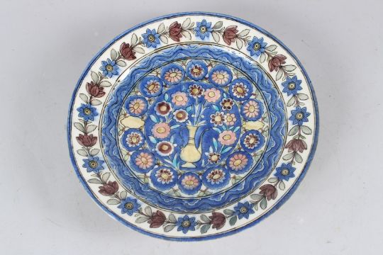 A FINE 19TH CENTURY PERSIAN QAJAR GLAZED POTTERY DISH.