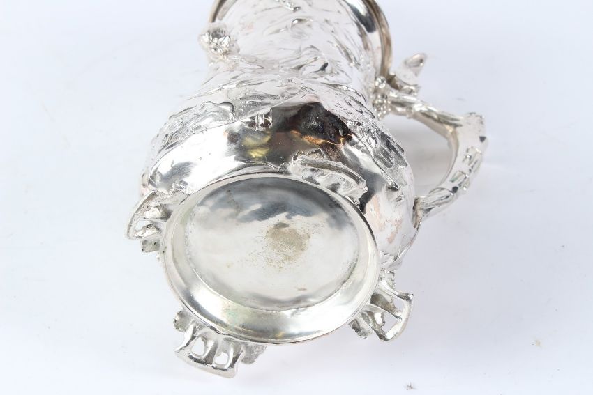 IN THE MANNER OF WMF, A PLATED STEIN WITH FIGURAL DECORATION.