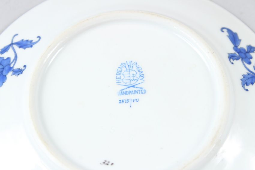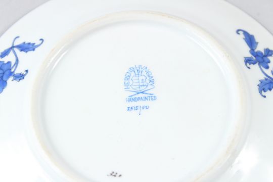 A HEREND PORCELAIN PLATE, with basketweave border, painted with fish and seaweed; together with a similar smaller plate.