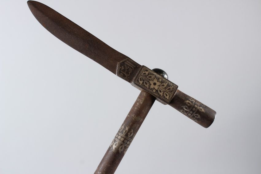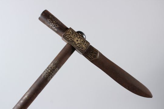 AN INDIAN ZAGHNAL STEEL WAR HAMMER, with Niello decoration.