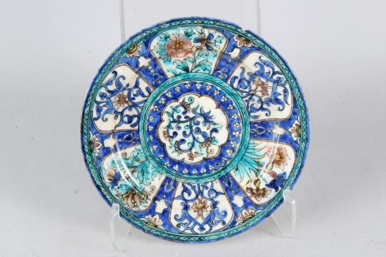 A FINE 19TH CENTURY PERSIAN QAJAR GLAZED POTTERY DISH.