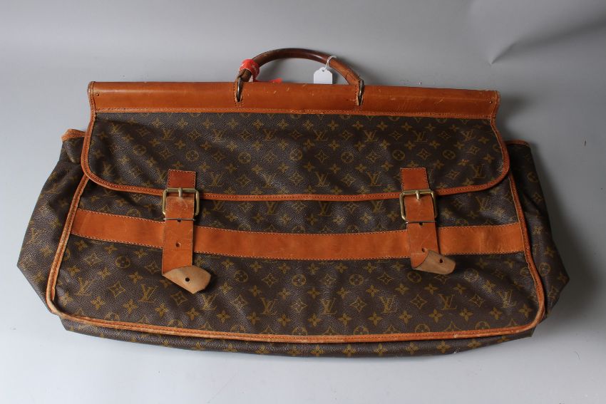 A LOUIS VUITTON HOLDALL, with double straps and buckles.